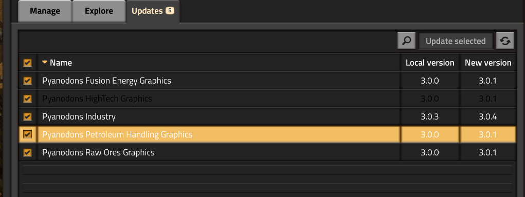 I caught that: Had the HighTech mod selected, after the first mod was updated, the text for it got black, the selection stayed in the location (like an old reported issue that is marked as won't fix). The black text of the previously selected mod is new though.