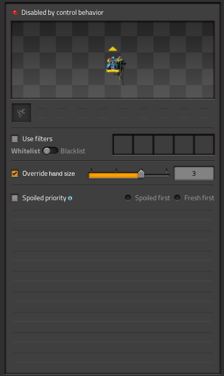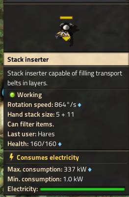 • Inserter's hand stack size override, a user input parameter changing the value of the previous phenomena.