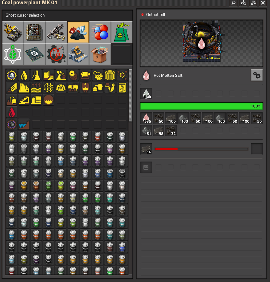 As a side note, I noticed that hovering over the fuel slot when it's empty shows a set of fuel inputs that do not include "crushed coal", which as can be seen in the save clearly is a valid fuel for this building. Should I make a separate post over that?