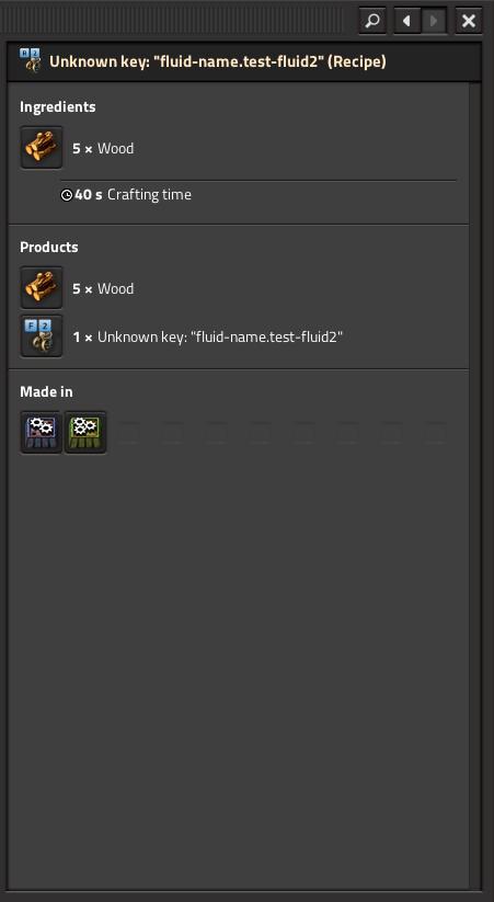 Some examples of this are with this one recipe in my mod, where an item merged with its recipe after changing the recipe name, which seems to be the intended behaviour: however, a similar fluid recipe would not merge with its actual fluid and considered the intended recipe for obtaining that fluid an "Alternative recipe": despite the recipe and main_product being exact same as the fluid: this also occurs with another fluid that only has one way of being produced, and is only used in one recipe to create another fluid: (you get the point by now