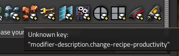 Fig. A: Shapeztorio uses recipe productivity for one of its researches, but without SA installed it throws an unknown key message - the key should probably be present in base instead of SA