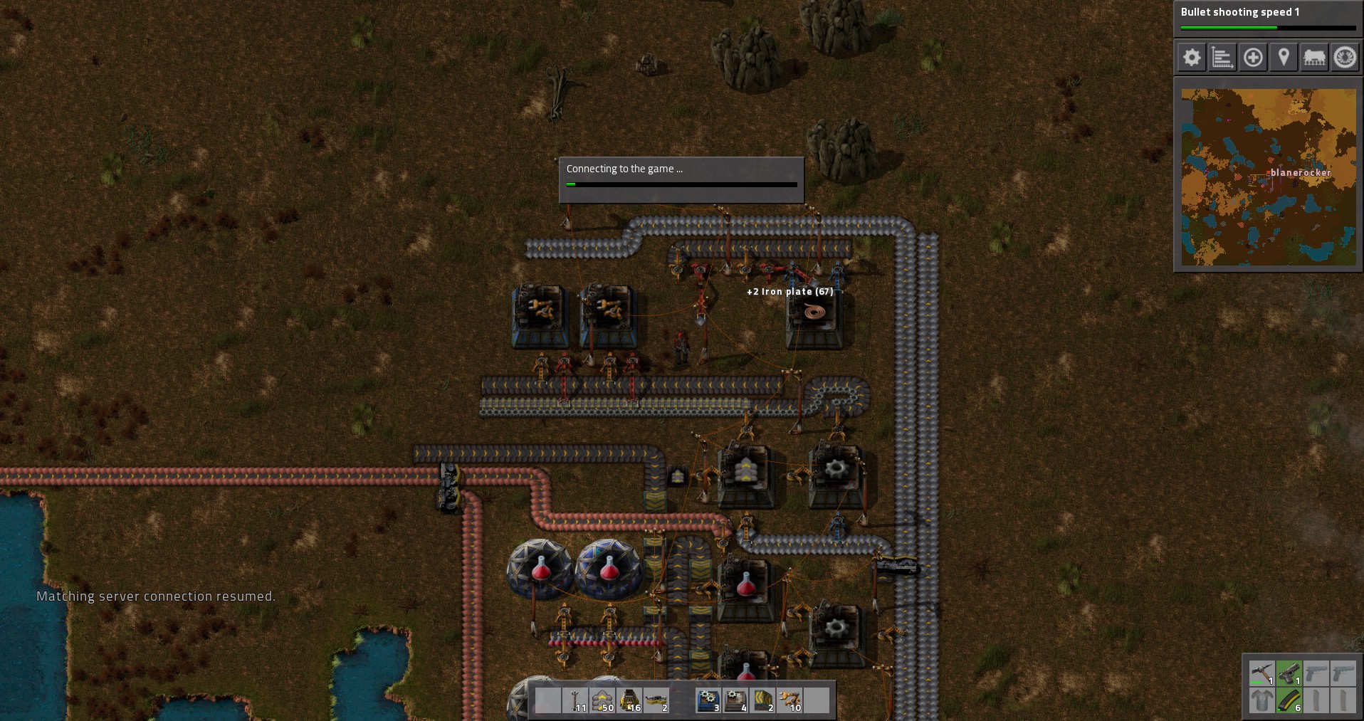 Even after I log out of my server manually and join his the Connecting to the game bar will still be there until I restart my client. I also should mention that I was still able to manipulate things such as picking assembly machines up, mine ore, mining trees, and that was the only things I tried to do, the only thing I couldn't do was place objects.