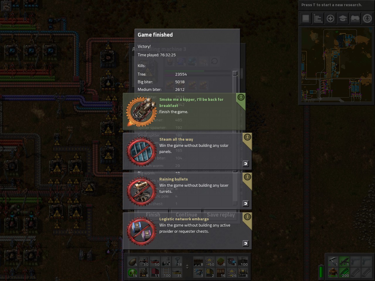 I just finished the game and Raining Bullets, Steam All the Way, and Logistic Network Embargo did not fire correctly in game. They do show up as complete achievements in Steam however. I even grabbed a screenshot cause grabbing all three of those at once was sort of the point of this run.