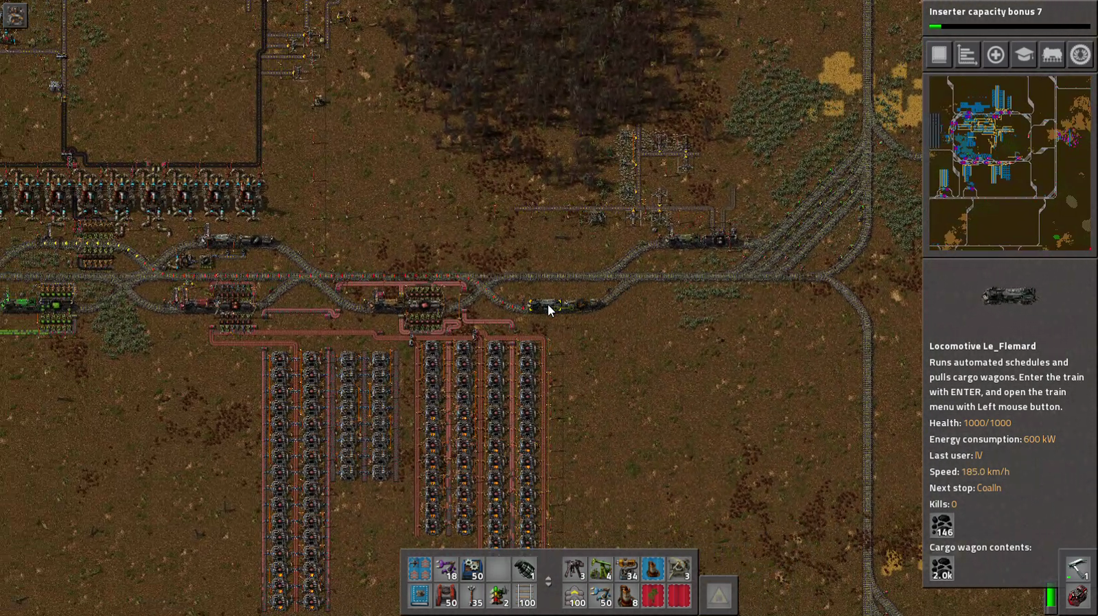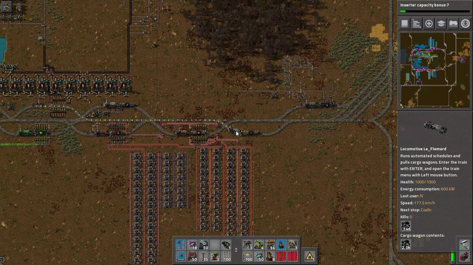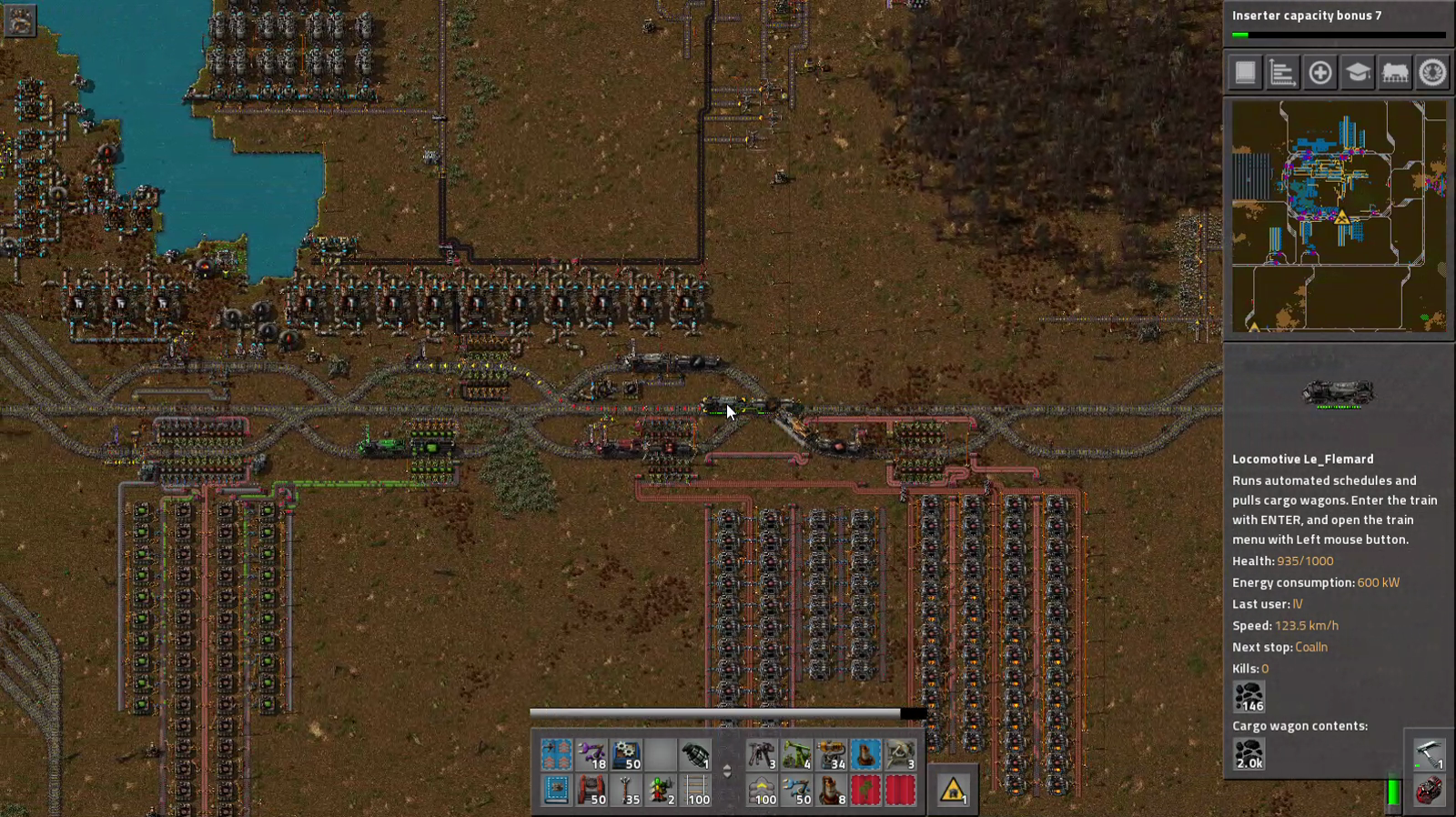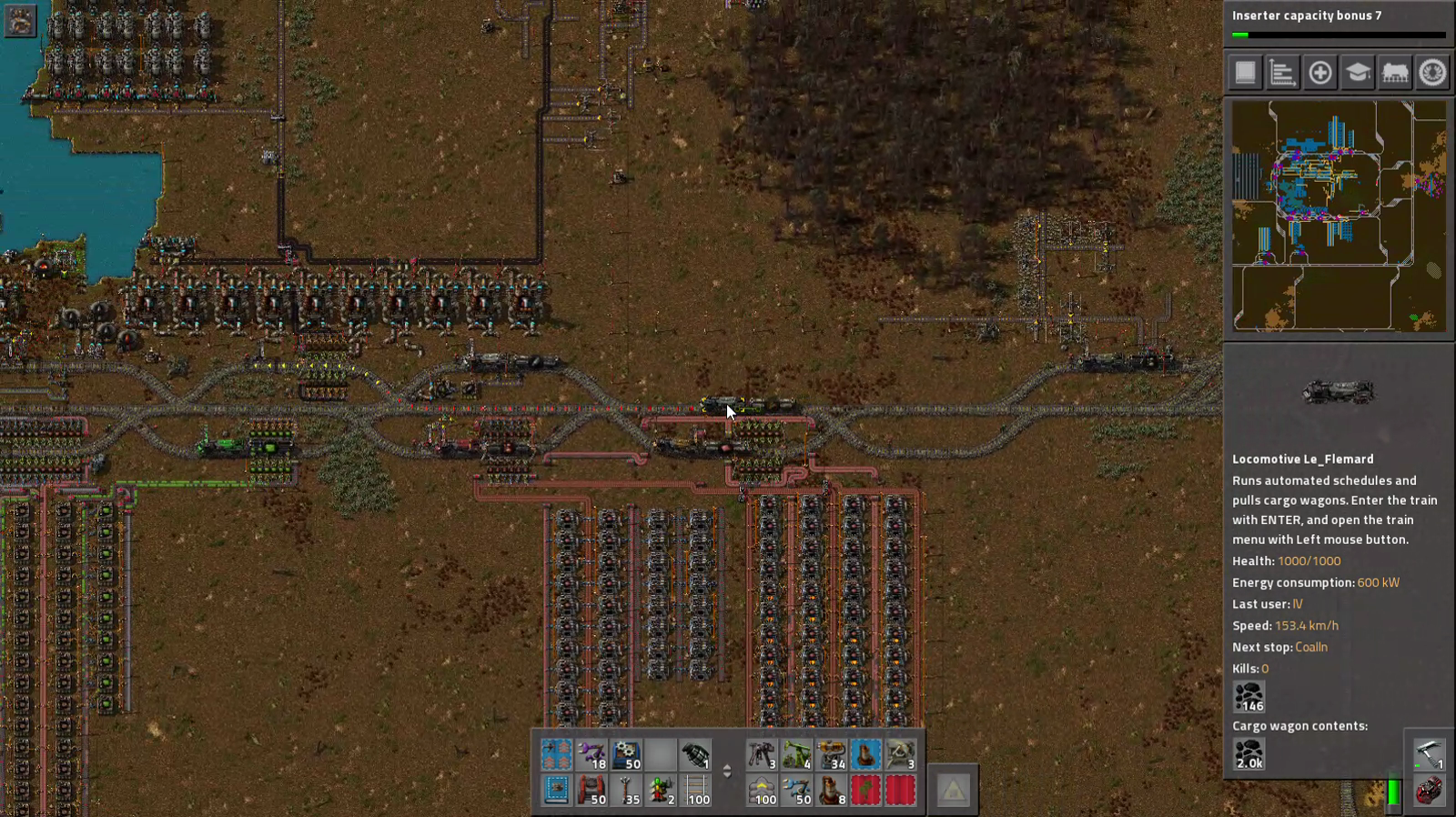 3-4x now after expanding my solar setup the trains have become blocked at my iron smelter.