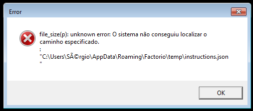 "unknow error: System could not find the specified path."