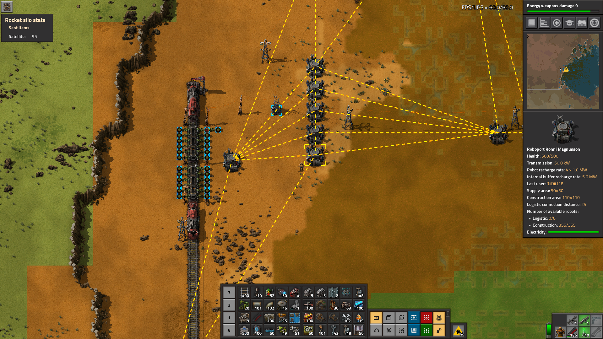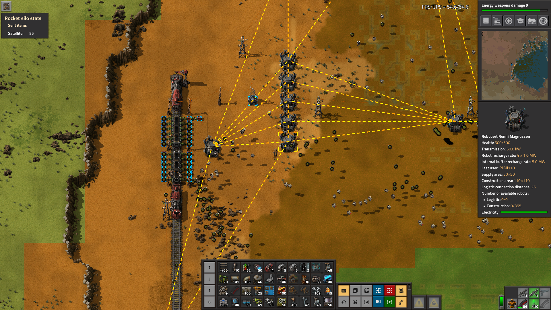 - At one point, the bots were completely idle in the Roboports (e.g. not charging) while many landfill ghosts remained in the network area and approximately 1.4k landfill was available in the passive provider chests. Unfortunately, this was not captured via video or screenshot.
