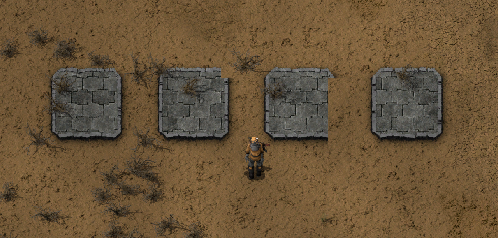 Screenshot was taken after saving and playing the scenario, the save file is attached: The reasoning behind which borders show and which don't is unclear, to me anyway. First found the problem when trying to copy furnace setups with the concrete around it during an editor blueprinting session.