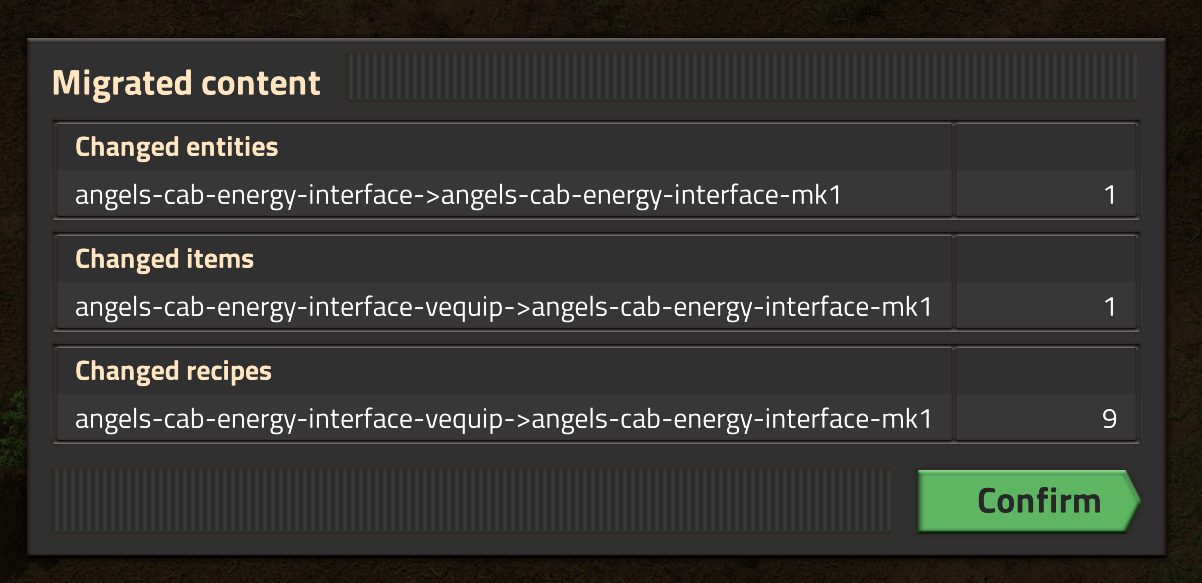 • angelsaddons-cab_0.1.4 is the updated mod (newer version (0.1.4) than on save file, containing some items, entities that needs migration).