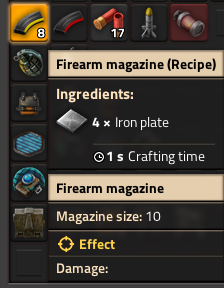 No ammo damage info on tooltip, both on weapons quickbar and crafting menu.