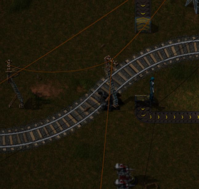 So I'll it sound, so I'll it is, but when the train drives there, it destroys the pole. The things behind are not powered anymore, until it is replaced by a construction bot.