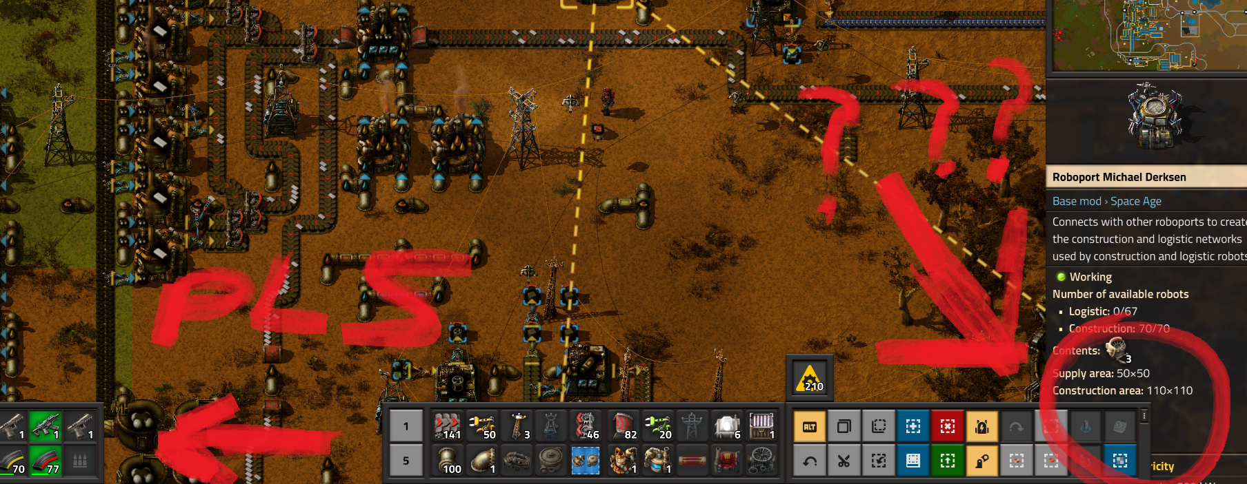 Also, there is a pretty easy thing to do that would help a great deal - allow the user to control which components of the sidebar UI even appear, just like already exists for minimap. This thread suggests hiding the entity preview, but that can be extended to all the UI elements. For example, in addition to the entity preview, I would disable the "last user" line and the "add tag" and "add ping" buttons - I do not play multiplayer, and have no need for them - and a couple of the "overview shortcut" buttons like for production statistics and trains, as the hotkeys for those views suffice.