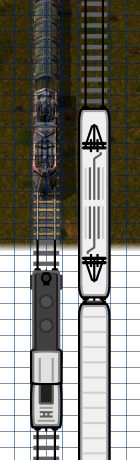 Factorio train compared to abaout proportional normal gauge train models from another project. They are 65 px wide.