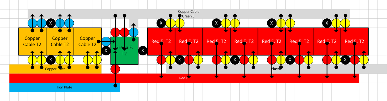 And yeah, the wiring is still back from the days when it wasn't possible to connect chests with inserters directly but rather when it had to be done over an electric pole. Nostalgia.