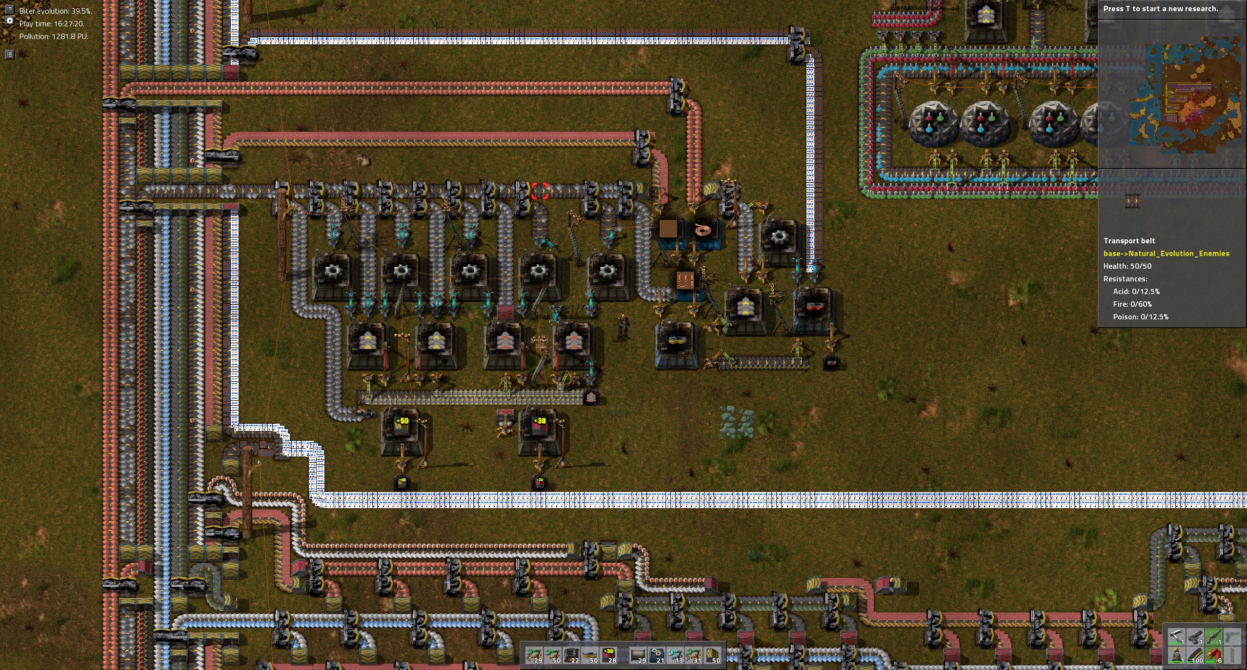 Hey, i'm new here but wanted to s how my recent build. Just startet new and lost my recources because of the biters. their base is on the right side so i had to compress the science production, and i'm pretty proud of the result.The best part is, you manually can change the directions of the conveyor belt to "fine-tune" the productivity of the sciencepacks. Hope you like it as much as i do.