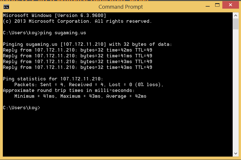 Pinging sugaming.us [107.172.11.210] with 32 bytes of data: