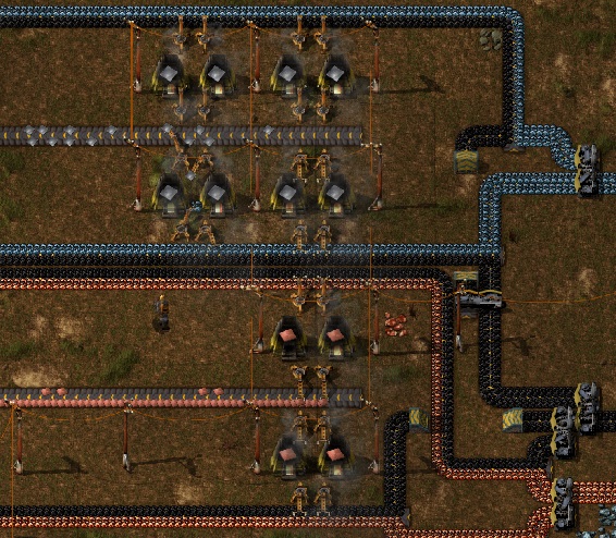 I do like mixing the ores and coal, makes a lot of sense. The wee splitter turning the lines double - love it, so tidy and simple. Simple is doing it for me lately.