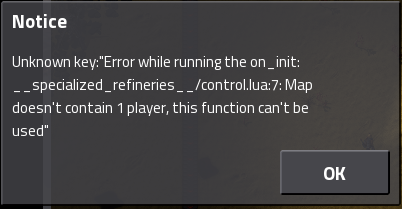 Although initially I had and issue reloading my saved game I stumbled upon this error "__specialized_refineries__/control.lua:4: attempt to index global 'script' (a nil value)"