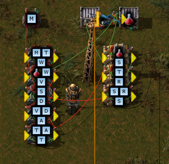 Another problem is that I usually have to use this combinator group for every single inserter, because they need to set their filters individually. That means for 8 multiple lanes, or 8 inserters I will need 8 * 4 combinators. But thats really too much.