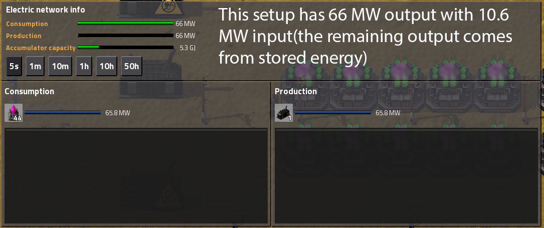 I personally wanted to play this in a way such that with fluctuating load, the production fluctuates. Also i really don't mind the ability of the accumulators to store energy, but an over all balance can be reached by lowering its rate .(a standard ratio should be 1:100, that is accumulators can not store at a faster rate than 1/100 of the actual process)(here rate is the voltage>>inlet and outlet). Their storage capacity can however be further expanded, as that would make more sense.