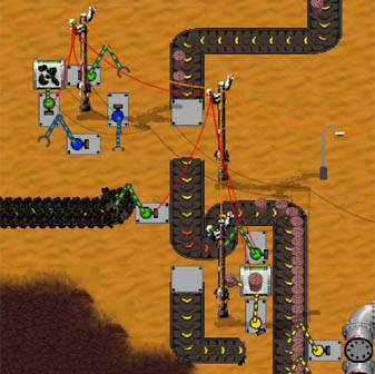 At the injector station, the power packs are put on the belts which feed the power plant. I used a memory circuit to only inject, if there are more than 50 power packs in the chest, and switch to coal if there are none.