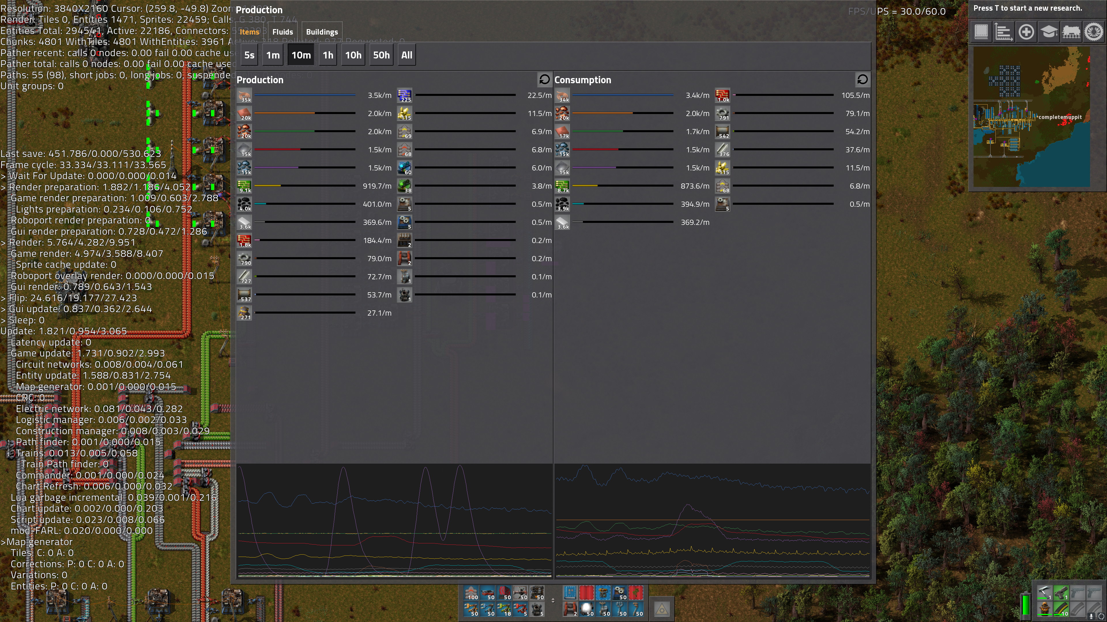Regardless, current behaviour is that every time an autosave happens (currently every 2mins) the UPS drops down to 30. If I hit F5 to bring up the debug menu UPS immediately goes back to 60UPS. This will continue until the next Autosave when it drops back down.. This has just stopped happening. Now autosave does not affect UPS... gah!