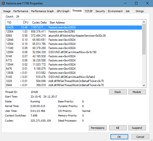 - A stacktrace of the selected thread