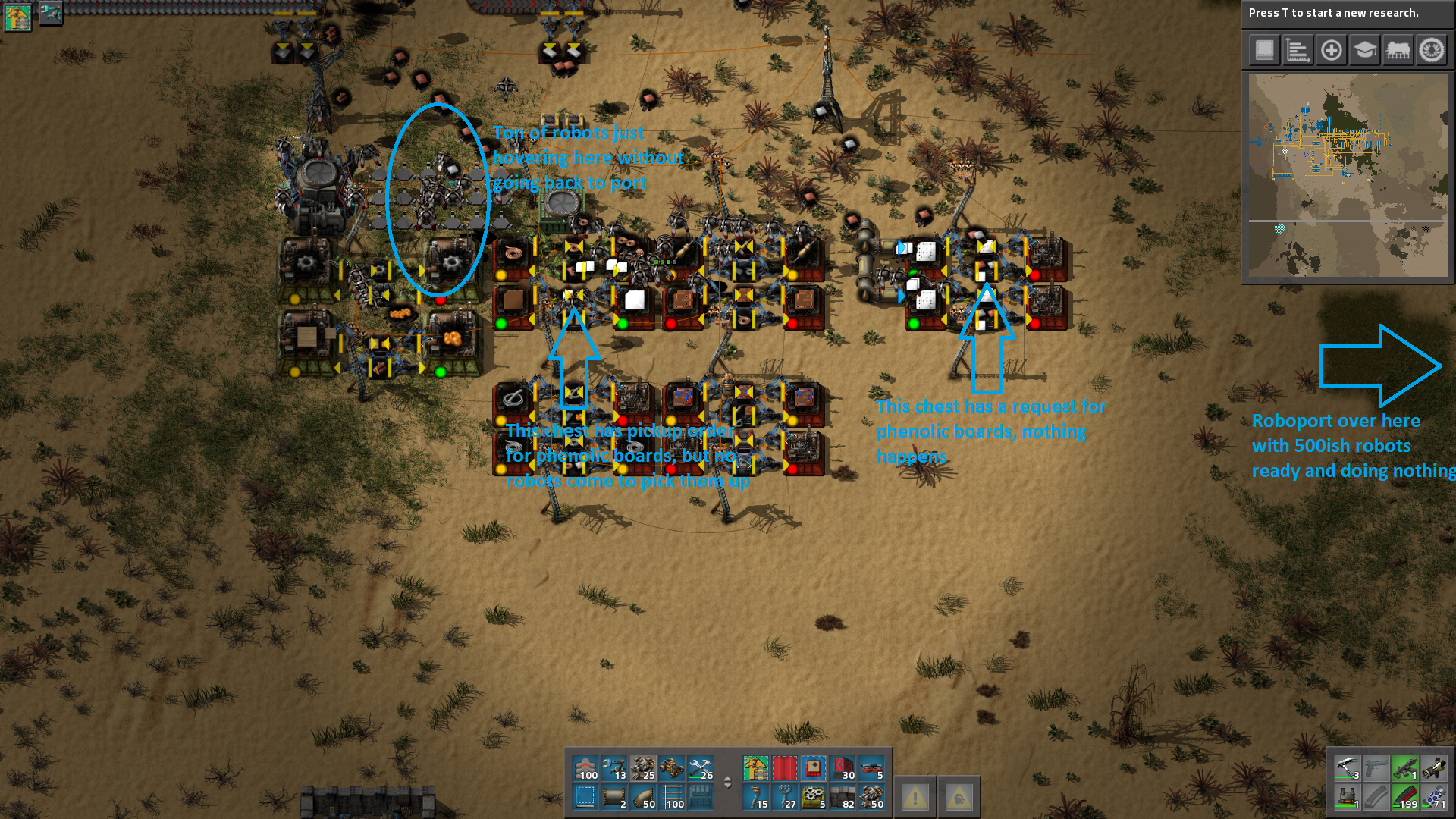 But that's the thing, they're not waiting to charge and there's plenty of charge ports available in the two 'Large robot charging point'.GodricSeer wrote:This isn't a bug. A roboport only has 4 charge ports, so all those robots are waiting in line to charge. Place more roboports to let them charge faster.