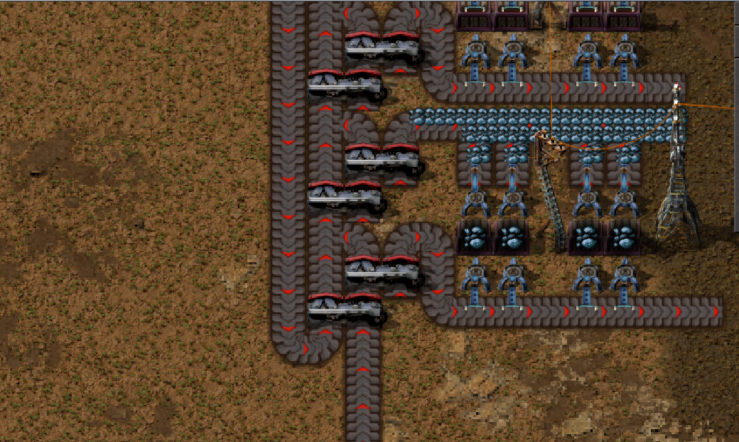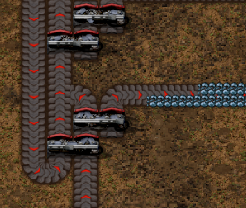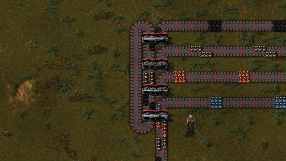 For the most ore patches i have a dedicated train but for these patches i want to have a multi ore train. Now with the new splitters i though now i can make it more easily when unloading the train.