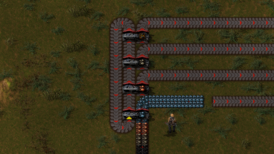 2. You loop back the outputs of the filtering system to the beginning of non-mixed ore lines, so they get priority space to move outta there.