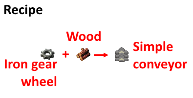 I suggest adding a simple conveyor at the initial stage of the game, since, in the beginning the main resource is a tree, many save metal, therefore a simple conveyor will be constructed from Iron gear wheel and wood