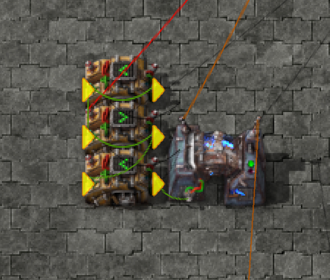 - In a factory where solar panels charge accumulators in daylight and discharge them at night, we may want the steam engines and turbines to only work if the accumulators are depleted. We want Solar -> Accumulator -> Steam (engines + turbines)