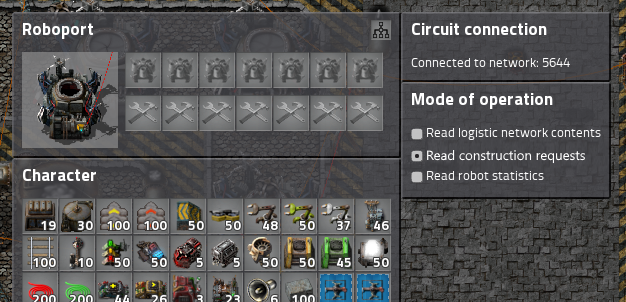 - Account for roboports/networks being built, destroyed, etc. This should effect the outputs, I think perfectly doable but makes the coding a lot less trivial. If using a "pulse" output, should it re-send the pulse?