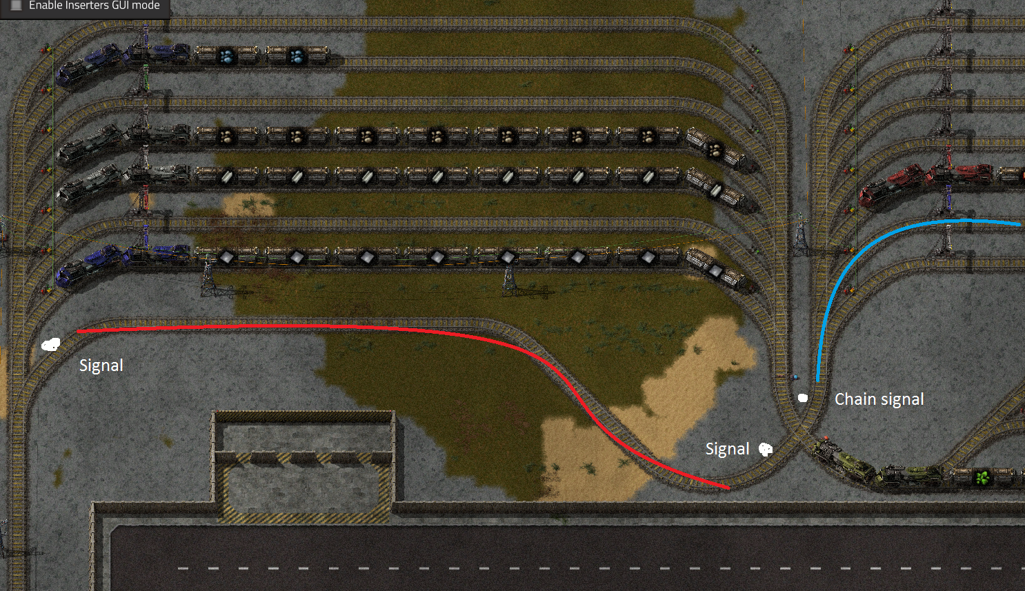 knightelite wrote: Thu May 30, 2019 11:11 pm Did you actually figure out a way to get multiple trains that start in separate signal blocks to all enter the same block? I was wanting to find a way to do something like that but was unable to make it work (my efforts resulted in trains insta-braking at the signal when I tried it). Here was my try at it: https://www.reddit.com/r/factorio/comme ... gnals_too/