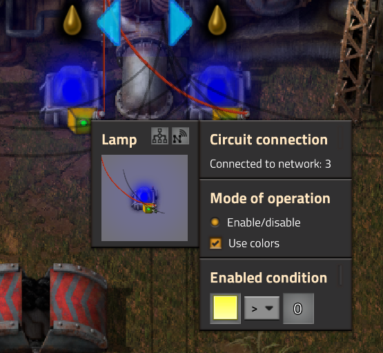 The other thing I'd like to propose is to display in information window signals received by lamps or pumps if they are in circuit (the same way combinators do) but that would be separate topic.