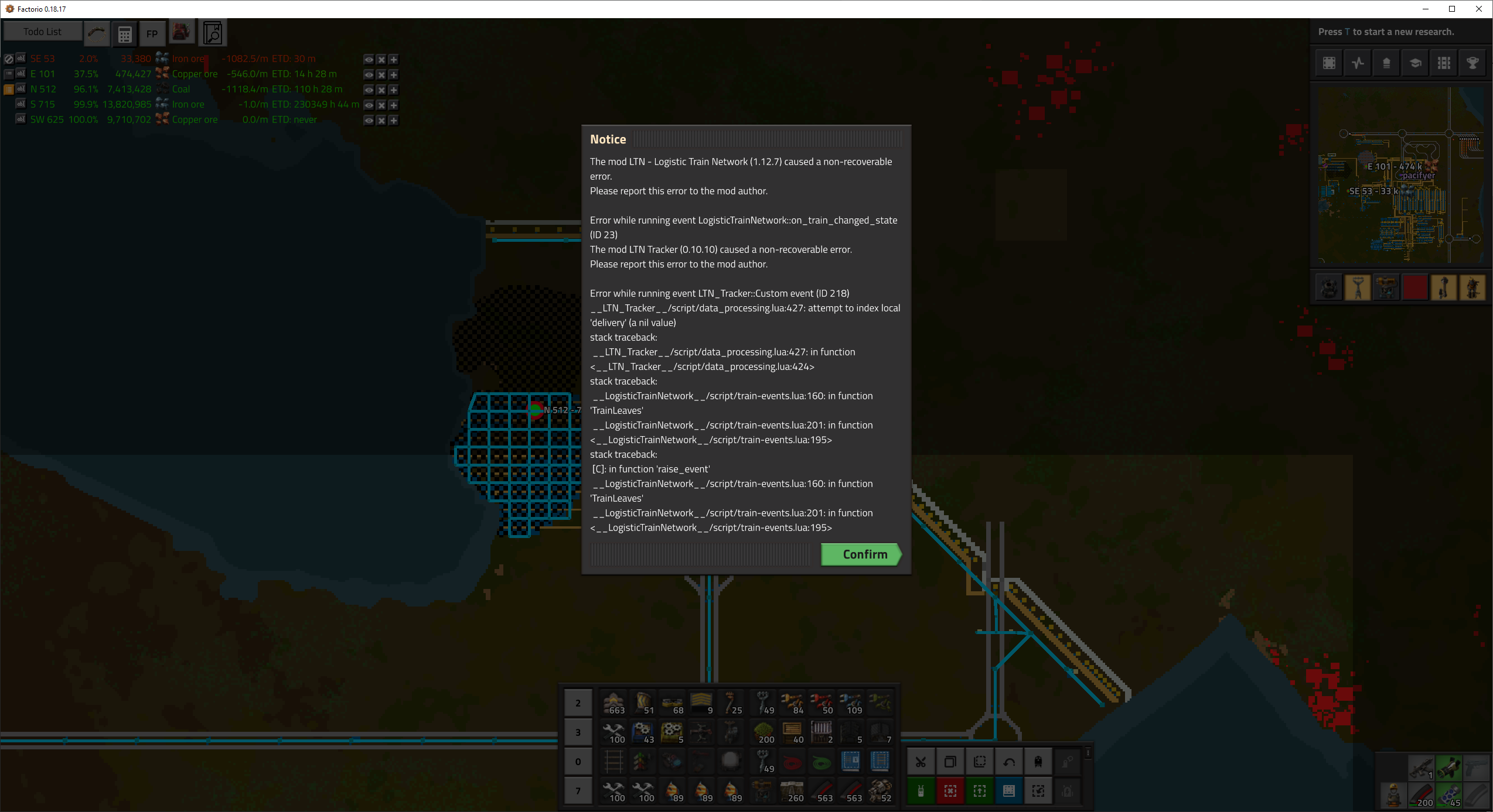 Le mod LTN - Logistic Train Network (1.12.5) a engendré une erreur non récupérable.