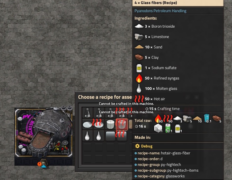 By the way, it should be pointed out that this change to glass is not Py Alien Life being like "you put this on yourself, deal with it". This affects even PyCP alone. In not-PyAL I would actually argue that it makes early game tedium worse, because there's less going on, since red science is just glass + coke + fawogae.