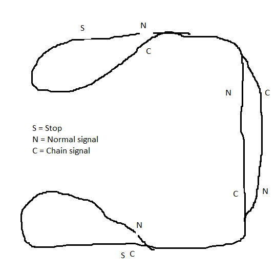 This is oversimplification which does not work with single tracks. You should never put normal signals on bidirectional track. There should always be free room after normal signal so that train does not stop and block other trains.evileye.x wrote: Thu Jul 23, 2020 12:17 pm Train signals are not that complicated.