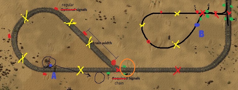 It is always good idea to avoid crossings on main lines because they may cause throughput issues, but if such crossing is needed you can use this setup. It never deadlocks if there is proper place for all trains to go.astroshak wrote: Thu Jul 23, 2020 9:29 am To successfully unite One-Way and Two-Way tracks can be a nightmare. I’d suggest avoiding (if possible) crossing two-way tracks with another track, in an effort to leave the two-way track completely signal-free.