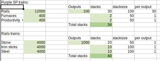 Then all the stacks are added up so I can make sure I haven't exceeded the limit of 40 stacks per cargo wagon. I adjust the initial guess until everything fits.