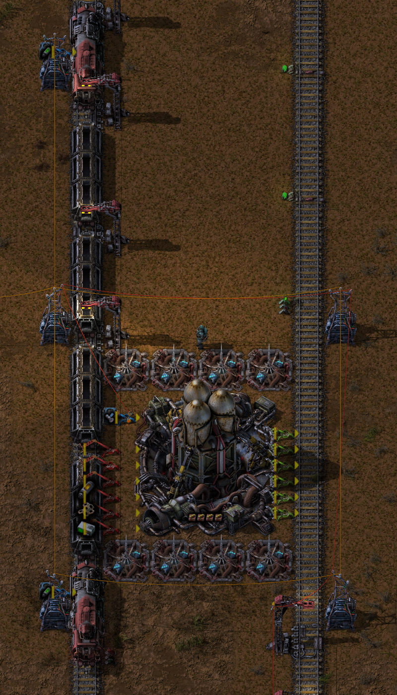 mrvn wrote: Wed Aug 12, 2020 3:06 pm You can have 4 train tracks per assembler, one on each side. All 4 sides with stack inserters. No need to get mixed wagon loads unless you need more than 3 items to craft one result.