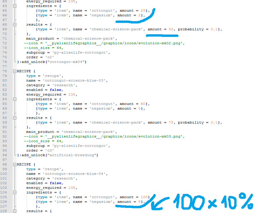 Nope. Not done. The rest are coming. Hasn't been updated as the majority of balance stuff has been done. I am working on them but at this point I have a large number of somewhat interconnected things related to them that all need done before the next update so the modules haven't gotten a release yet.Altaric wrote: Mon Sep 07, 2020 8:15 am I'm curious though, is it intentional that only a few of the mk plants/animals can be reliably made ? For about 20% of them we need to make a few mk 2 samples with the 0.5% recipe then breed them to make a farm. But for the other 70%, it seems they are sterile and can only be made with the 0.5% recipe which would be insanely long to fill the farms.