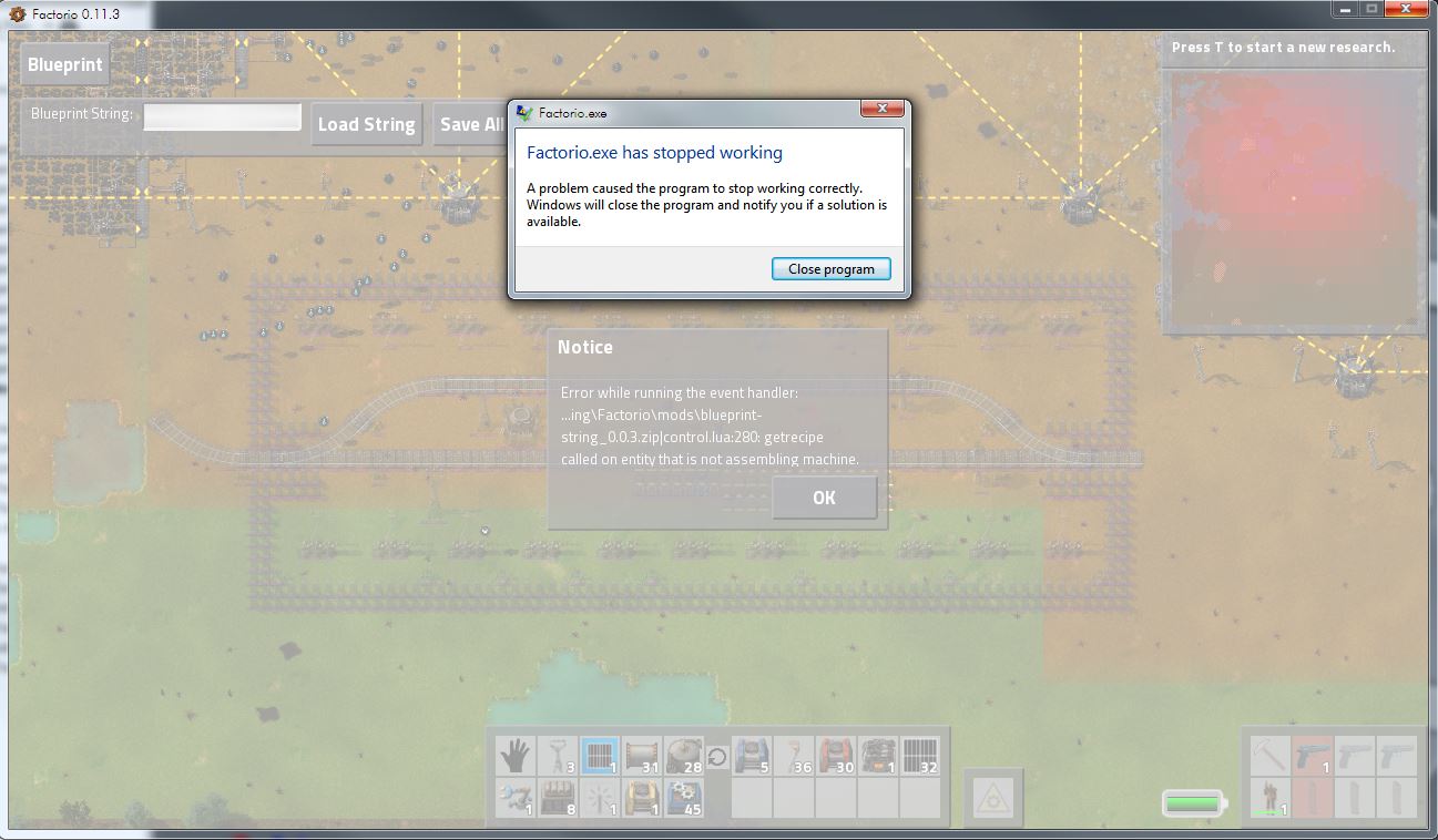 Used the code from https://forums.factorio.com/forum/vie ... =14&t=6516 for the outpost.zip, opened the file with copied with notepad and pasted to compressed it, ran it into Blueprint String, and it created the blueprint fine, placed it and bots started to come to assemble and crashed Compressed code