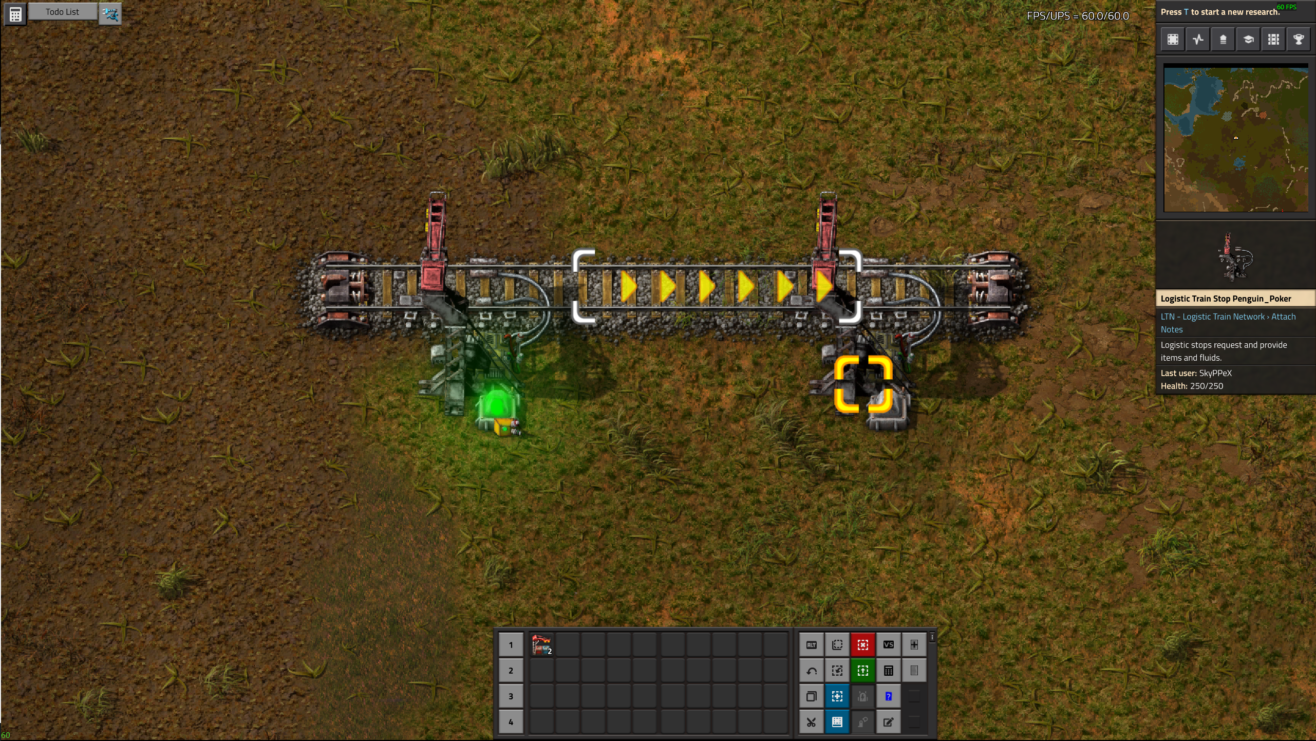 Result: Now each of the 3 components of the Logistic Train Stop are seperated; the Logistic Train Stop, the Logistic Train Stop Input and the Logistic Train Stop output.