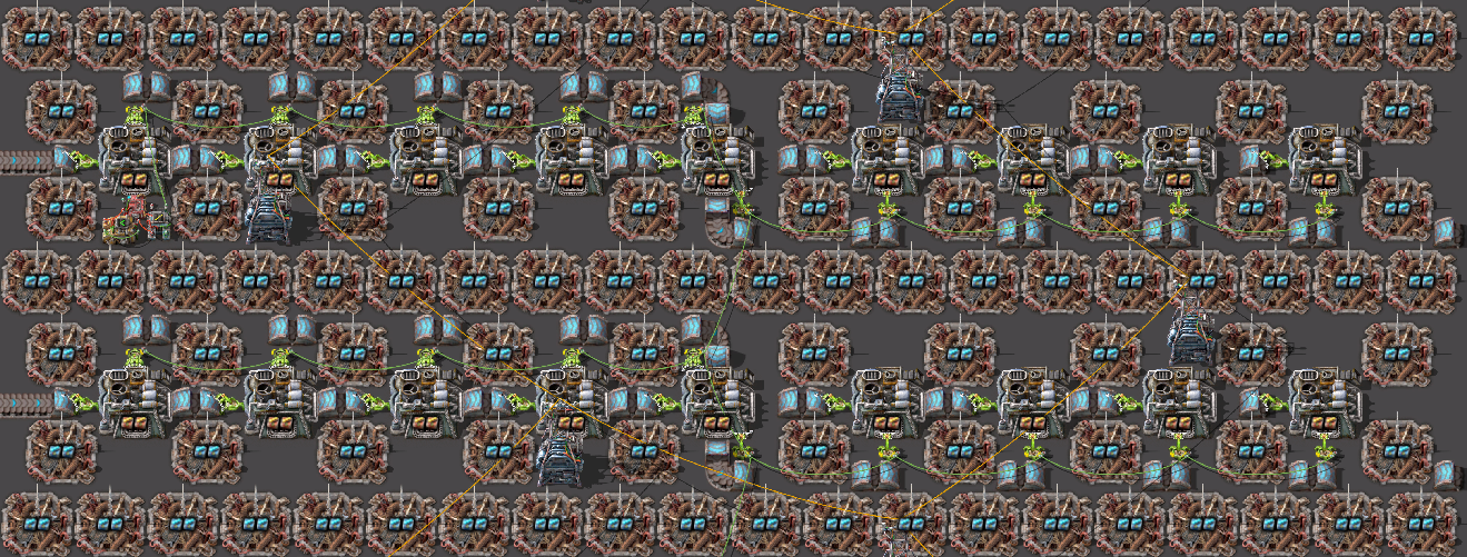 thanks for the recap ! i tunneled vision on the graph which is showing the not so big UPS boost in the signal transmission in this particular case. When i look at the graph the entity (yellow part) is too complicated/chaotic to dinstinguish a clear pattern. that's where the biggest UPS boost lies. But looking at the orange part it seems that the spike are roughly similar in height and frequency between the signal compression and non-compressed signal. What changes would be the "noise" the average level of orange in-between the spikes. ( that's one way to describe) At the end the result is a clear UPS gain in the circuit network part from 0.51 to 0.31 when looking at it applied to Belter's deisgn. That's almost a 40% gain considering only the circuit parts !disentius wrote: Sun Feb 06, 2022 9:19 pm @mmmPi: Making sure the inserters do not have to wait for a free belt piece was the biggest UPS boost (by Belter) Dave managed to find a more efficient signal transmission.