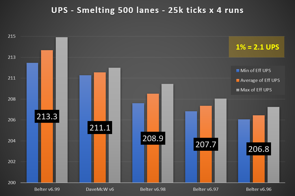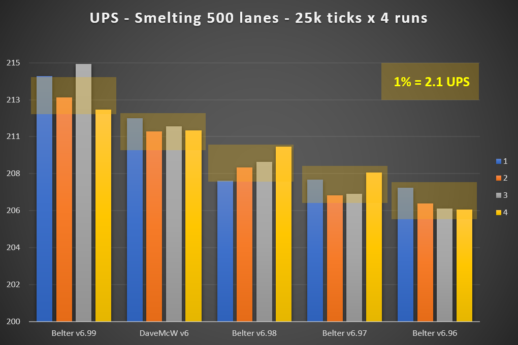 - Belter v6.96: exposed ore belts, stack inserters, same layout as 6.97