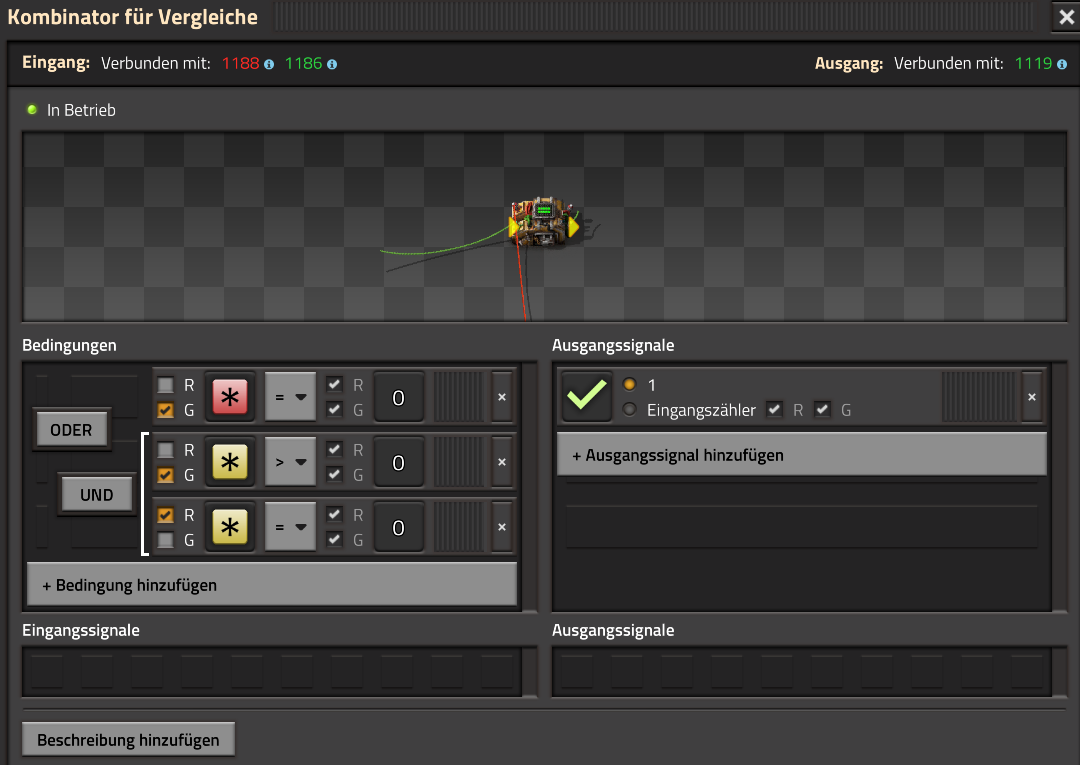 That is what im considering more now after your clarifications. It's just an important information about the 'each' and 'normal' mode, as there are already false bug reports about it on the forums, and who knows how many people just get confused without looking into the forums. So I would like to see it somewhere in wiki or tooltip info sometimes.boskid wrote: Sun Nov 03, 2024 8:13 pm If you do not accept the "stack of decider combinators" interpretation when [each] signal is used, then what would be the purpose of [each] signal? If you would be saying "[each] < 10 should evaluate true if everything is < 10" then there is a different signal for this, [Everything] and you should not be using [each] at all.