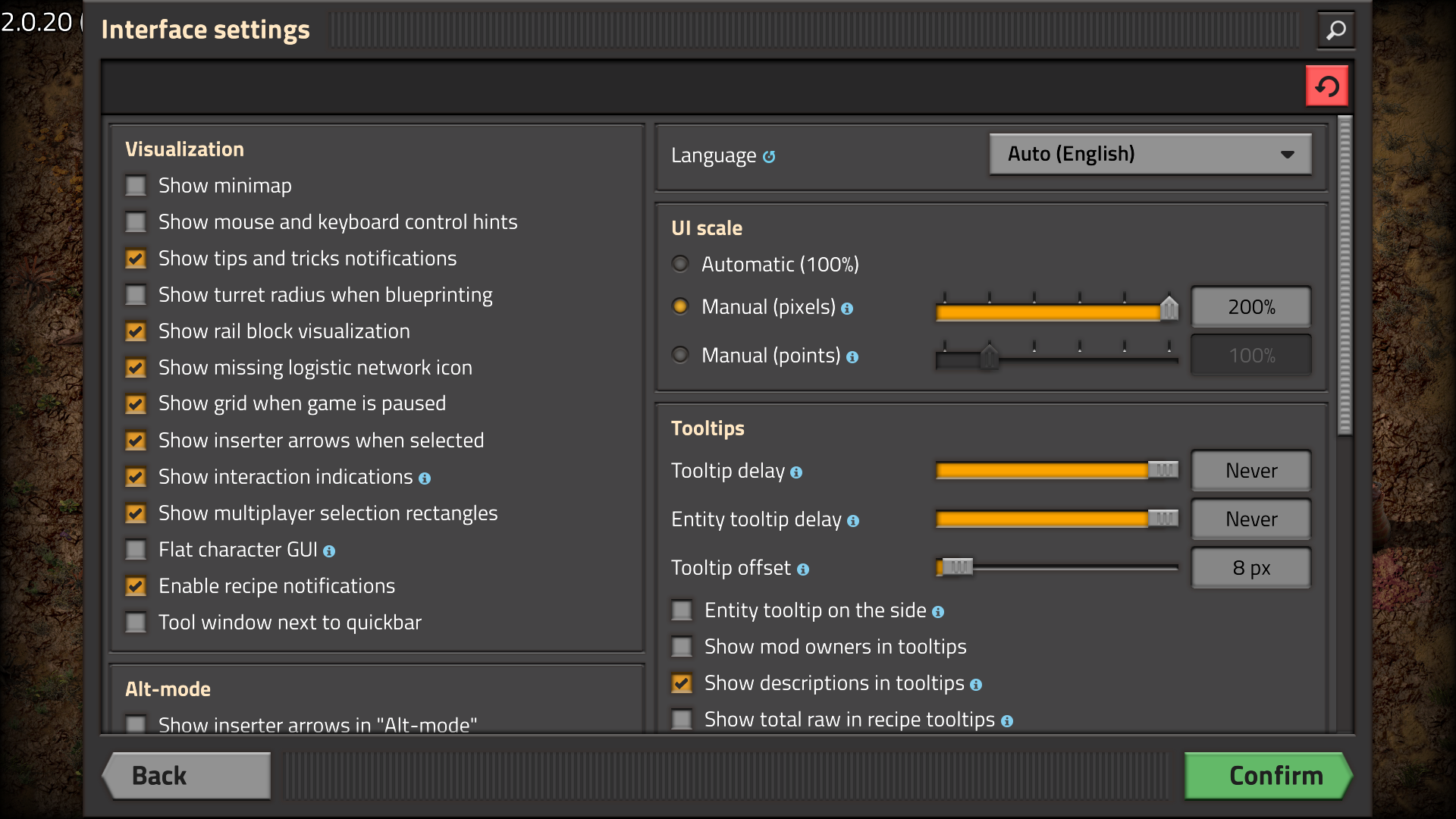 for me it looks like this with 200% on 1920x1080, this is the entire view of the screen, part of the GUI is cut off, including the "Confirm" button: