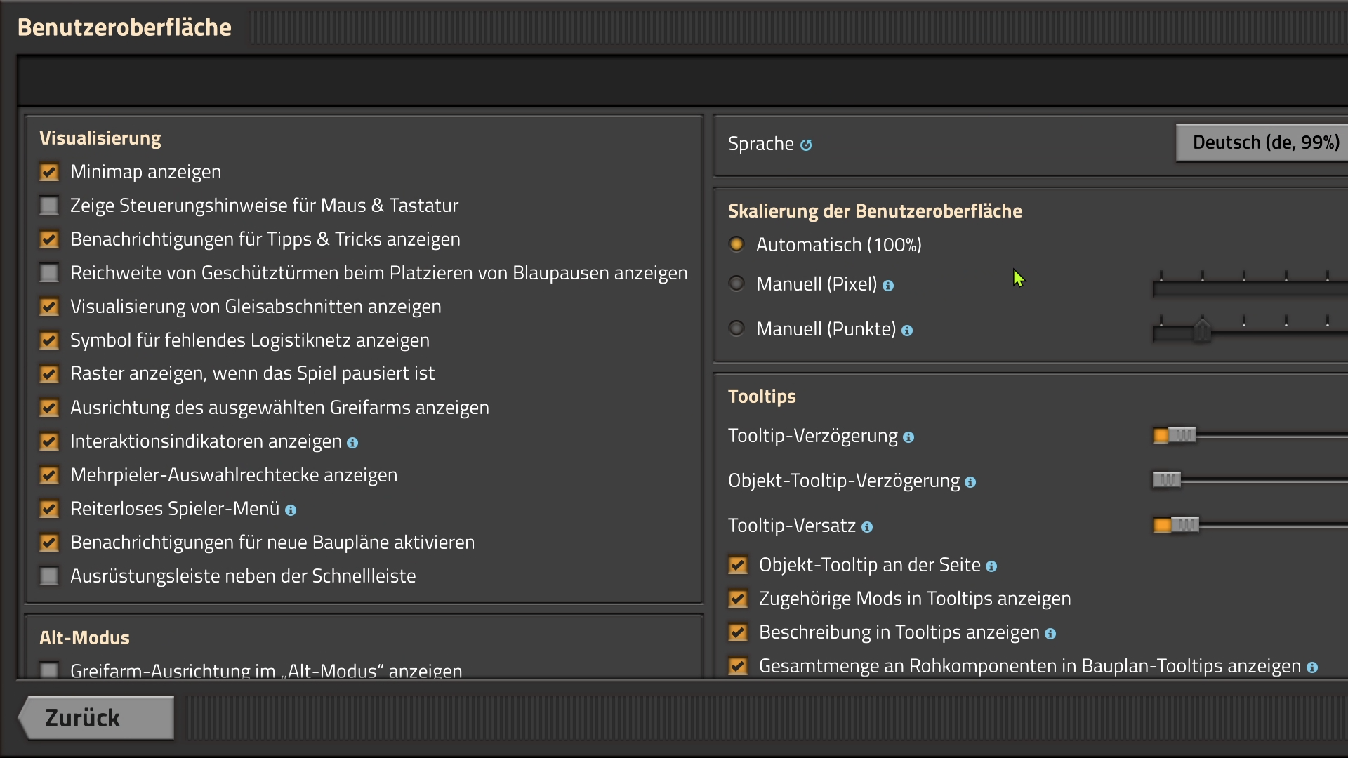 But in Factorio, Tab only seems to cycle between input fields, and not even checkboxes / sliders / buttons...
