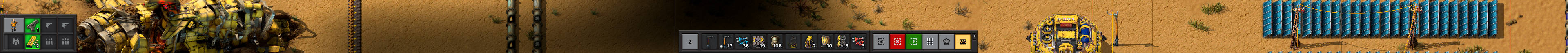 The new 0.17 quickbar has a cool feature that allows you to show up to four rows of items. However, when you enable this feature it obstructs a significant part of the vertical viewing area on a typical widescreen monitor. I tried using the feature for a while, because I like having access to extra items easily, but I ultimately turned it off because it wasn't practical. For example, when exploring the map and zoomed out, I would sometimes encounter a biter base south of me and I would enter aggro range for the enemies before I could even see the base, because the quickbars were obstructing my view.