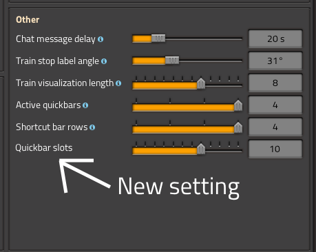 One important aspect to remember here is that now that quickbars are blueprints/ghosts, adding seemingly unlimited slots will not be cheating like it would be right now where items can be stored in the quickbar. It's purely a user interface shortcut or macro access.